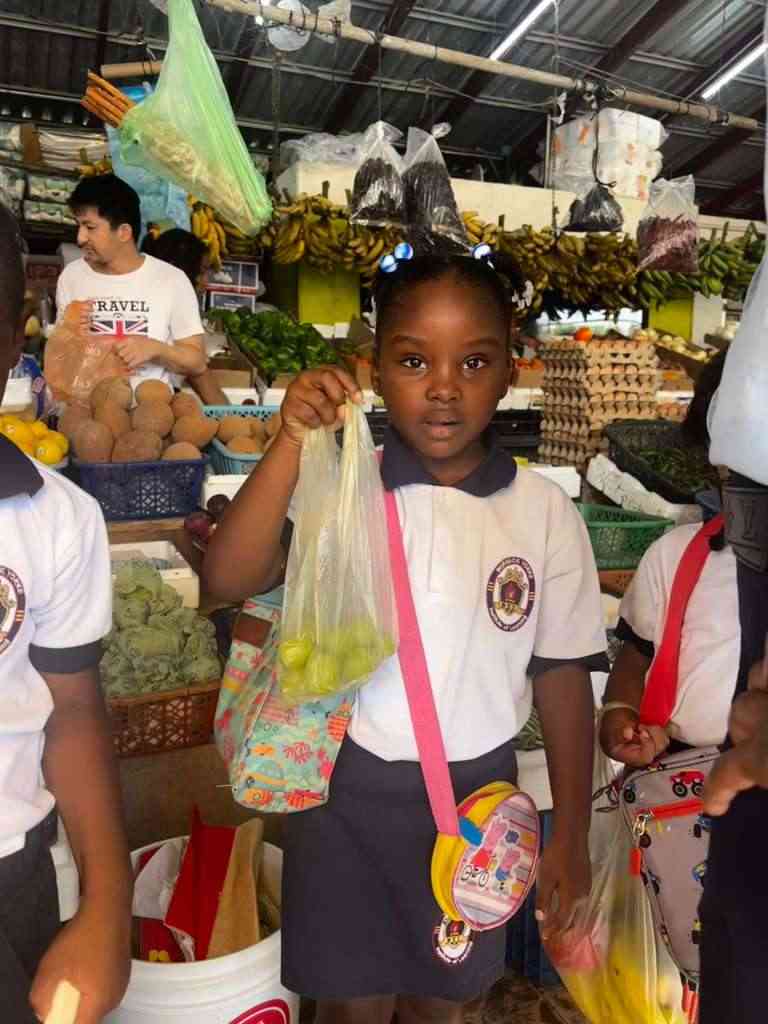 Guided by Market Manager Delroy Herrera, the students learned about the daily operations of the market and the important role it plays in the community. To make the visit even more special, the children had the opportunity to pick and purchase their own fruits to take home.
